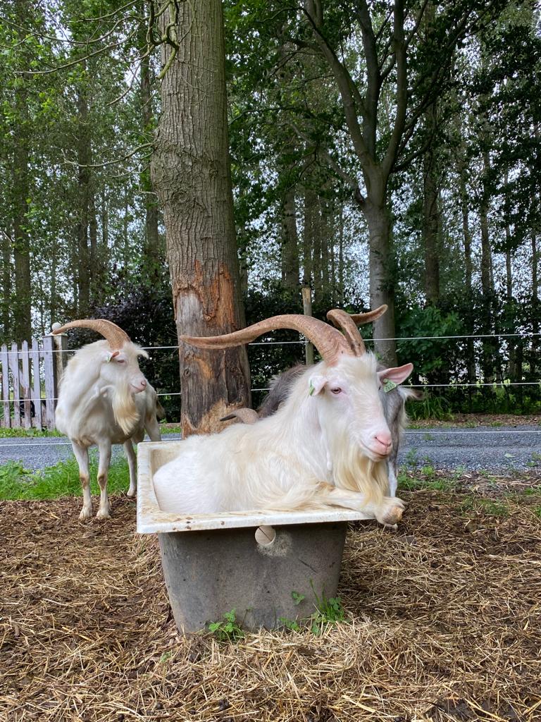 Hallo allemaal! Wij zijn een vrolijke bende geiten en wonen op de gezellige geitenboerderij Klavertroef in Scheldewindeke. Bij de start in maart 2015 waren we met zo'n 80, intussen zijn we al met ongeveer 400, waarvan zo'n 280 melkgevende collega's. We wonen in een nieuwe stal, waar we verwend worden met veel licht, verse lucht, lekker eten en een proper bed van stro. Als het mooi weer is, mogen we in de grote weides rond de stal om te grazen en in een leuk bos waar we ons helemaal kunnen uitleven!